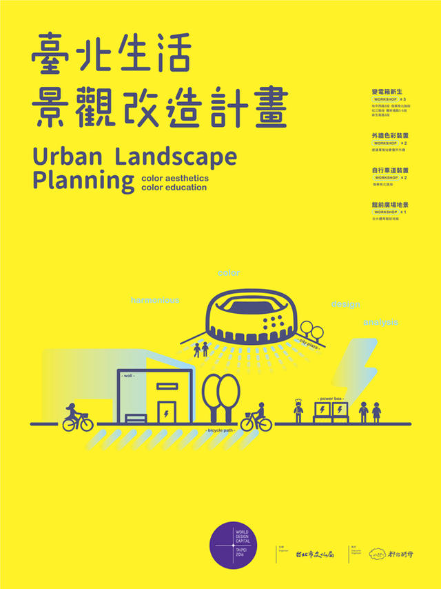 臺北市政府文化局「臺北生活景觀改造計畫」豐富街道美學的生活體驗,透過不同場域切入問題實際改造,未來還將在「復興南北路自行車道」、「臺大體育館前廣場」、「捷運萬隆站變電所外牆」三處做創意改造,自行車道將結合小學生創意,讓飛行物出現在自行車道上;體育館前廣場則是打造創意跑道意象;變電所外牆磁磚與縫隙也將融入環境色彩,藉由工作坊和實質接觸參與,從生活中逐漸感受環境美學重要性,建立在地人的生活共識,長期投資在都市生活感知的價值思惟上,這樣的臺北,誰不會愛上呢?