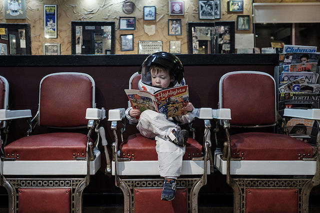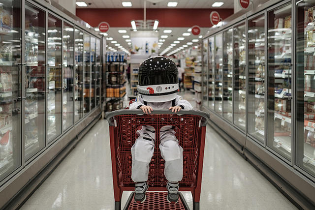 Sheldon 表示每張太空美照都花了 10 到 15 分鐘拍攝,而且有一點點算是偷拍,因為四歲小孩已經開始坐立難安(點頭如搗蒜 XD)。大多數的影像呈現,都是小太空人的小世界,背景可能是超市或圖書館,而 Sheldon 希望透過這些作品,提醒大人冒險就在身邊,以及孩子的想像力是無極限的。