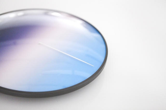 鐘面上的漸層色彩則是取自天空的意象:日出與日落是特別被突顯的白,作為白天與黑夜的曖昧分界,上下兩端則是熱情活力的藍天與沉默寂靜的黑夜。想著這面時鐘最適合的擺放位置不是牆壁,而是對著天空的窗戶上,當天空與時鐘的色彩相互呼應,更是多了一分趣味和浪漫氛圍。