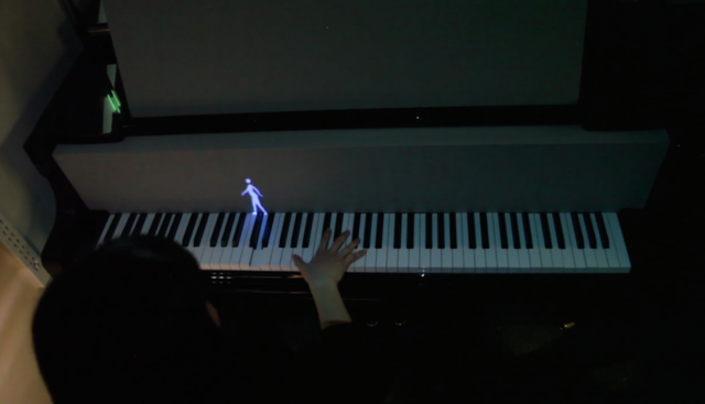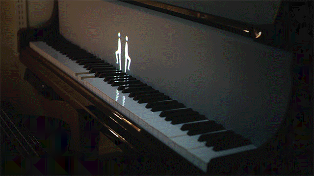 The Tangible Media Group 是一群來自麻省理工學院的畢業生組成,他們將傳統鋼琴演奏和現代的投影表演藝術做結合,投影在琴鍵前方的數位影像,隨著位置不同產生對應變化,遇到短促的音階,原本悠閒的人影就會像小偷般踮腳跳躍;或甚至同時出現兩組人像,一左一右分別踩踏出和諧的旋律。