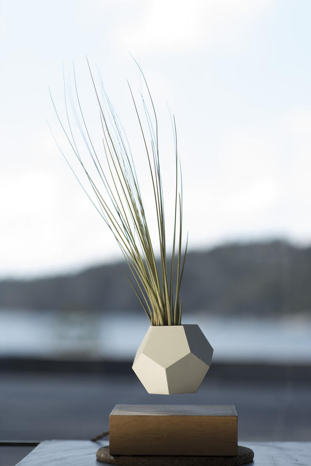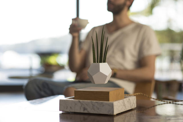 說到漂浮系產品,盆栽絕對是個很適合的品項,小小一株綠色植栽,靜靜懸浮在木造方檯上,輕輕撥弄幾下,它就會開始轉動,啟動虛擬的無重力空間,讓原本就頗具禪意的盆栽魅力更上層樓!