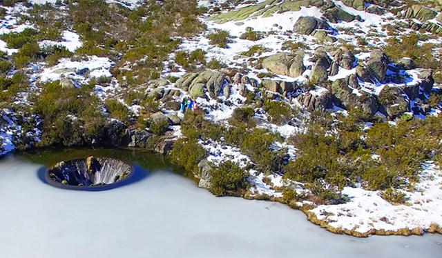 Serra da Estrela 埃什特雷拉山脈,位於葡萄牙中北部,是葡萄牙境內最高峰,三位男孩使用無人機空拍到的畫面,便是 Serra da Estrela 埃什特雷拉山脈國家公園內的保護區景色。這個乍看之下的破洞,使得湖水不停地注入其中,宛如黑洞一般地將湖水吸入,看來極為特殊。