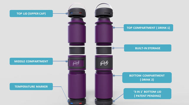 更酷的是,它有特殊的儲物空間設計,方便你攜帶每日所需,如麥片、藥丸、茶葉、狗飼料等。還有,尚在專利申請中的「流量控制閥」,讓你可依飲品特性調整飲水孔的大小,例如需細細品嚐的咖啡可使用最小出水孔;想要暢快飲水時,可調至最大的出水孔。