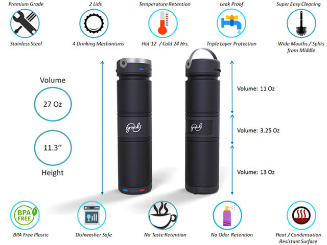 Golchi 瓶身高 11.3 吋(約 28.7 公分),3 個容器加起來的總容量可達 27 盎司(約 767 毫升),一瓶兼具 15 種功能,符合每個人的各種需要,可說是市面上最好用的保溫瓶。