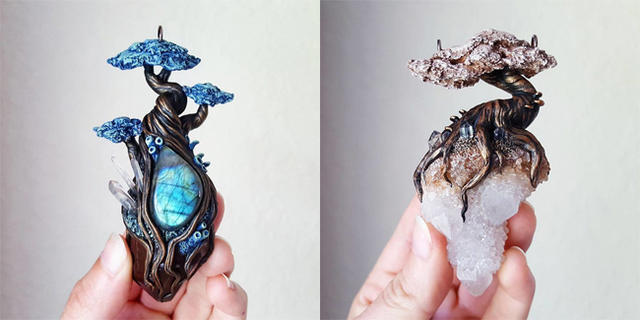 這些美麗的作品,當然不是藝術家掉到某個洞裡,然後偷偷走私另一個世界的寶藏,而是她用黏土與自然元素,如貝殼及水晶,巧妙融合出來的奇幻產物。「對我而言,創作這些作品,帶來了非凡的感受,而當你親自接觸到它們時,你將領略我所說的非凡。」藝術家表示。