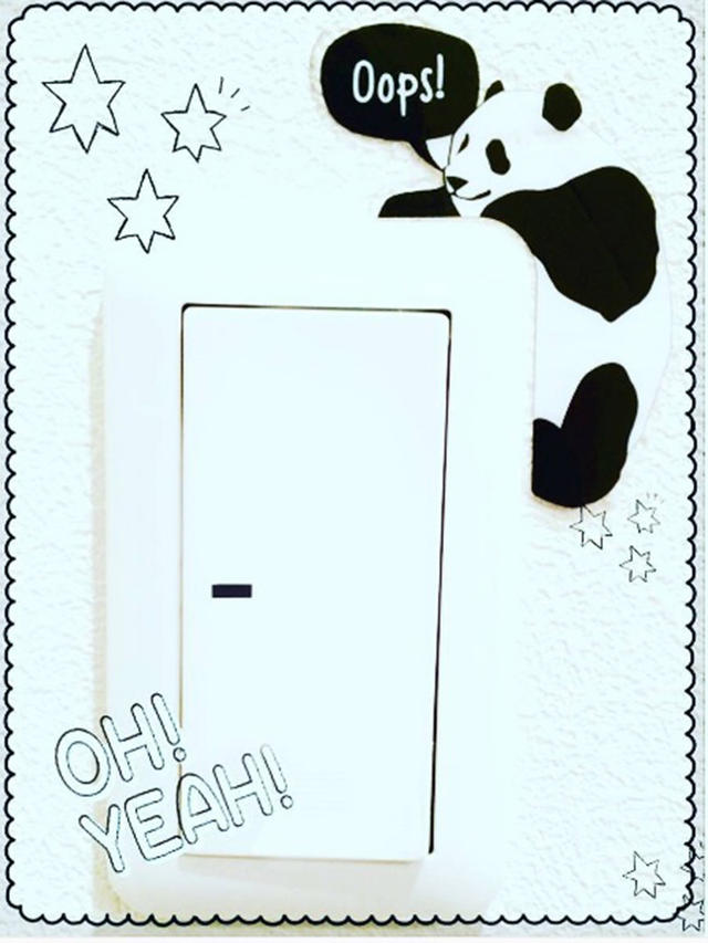 快要跌倒的熊貓貼紙,貼在電源開關上,讓生活多了很多想像力~