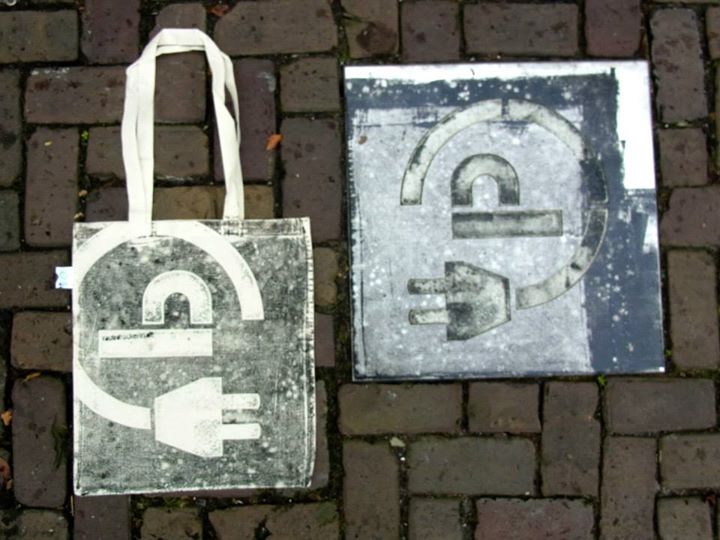 Raubdruckerin 運用拓印的技巧,在人孔蓋、水溝蓋、通風口上塗上一層薄薄的油墨,印在素 T 或袋子上,原本平凡的 T 恤立刻成為獨一無二的潮 T!
