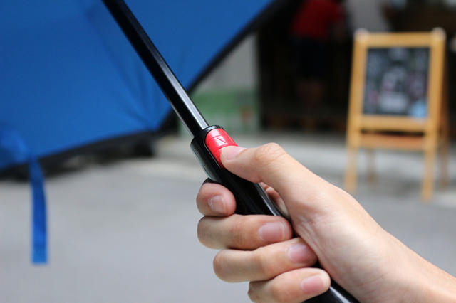 這把傘為何能讓挑剔的大編駐足呢?因為它竟然是自!動!傘!相較於一般反向傘,必須手動闔起,它在握把上設計了一個按鈕,以推代壓,收合時比傳統式自動傘省力很多,而且動作超級快的,千萬別隨便眨眼(再關一次不就好了)!另外,把手也長得很特別,十分符合人體工學,摸起來不會黏 T T,好握又滑溜~