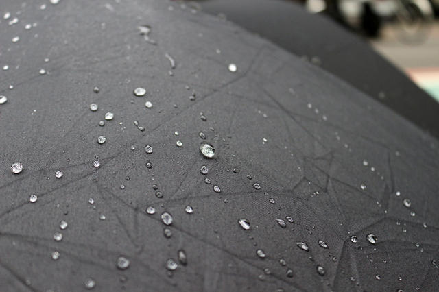 水在傘面形成珠狀,部分未滑落的水珠,甩一下就差不多清潔溜溜囉!