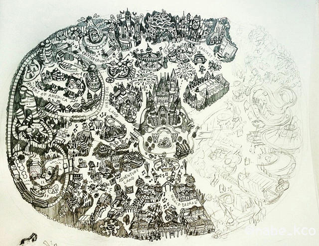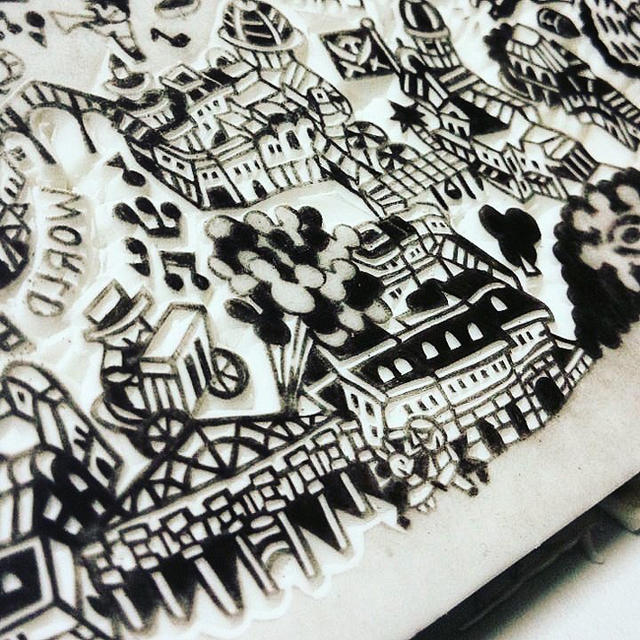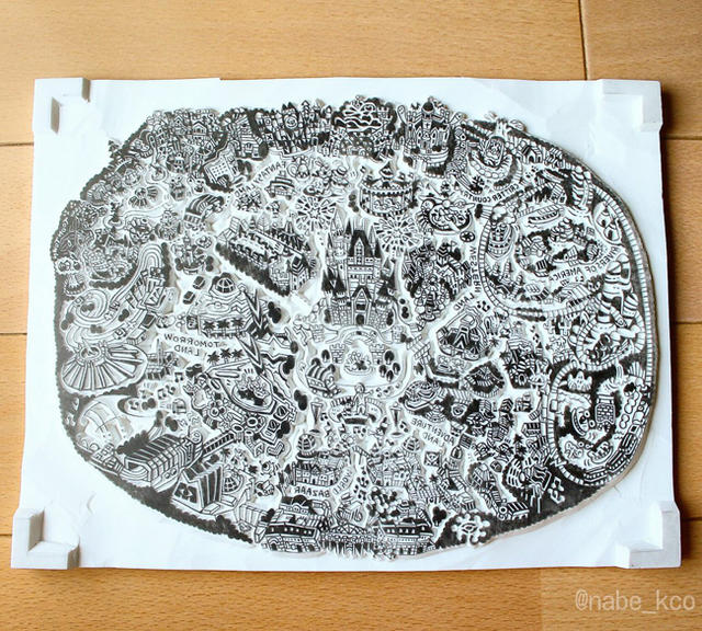 推特用戶 @nabe_kco 其實一直都有在創作迪士尼的橡皮章,各種迪士尼的系列人物都是它的刻劃對象,不過,近期令人眼睛為之一亮的作品,則是將東京迪士尼的整個園區設施,直接縮小成細緻的橡皮章。