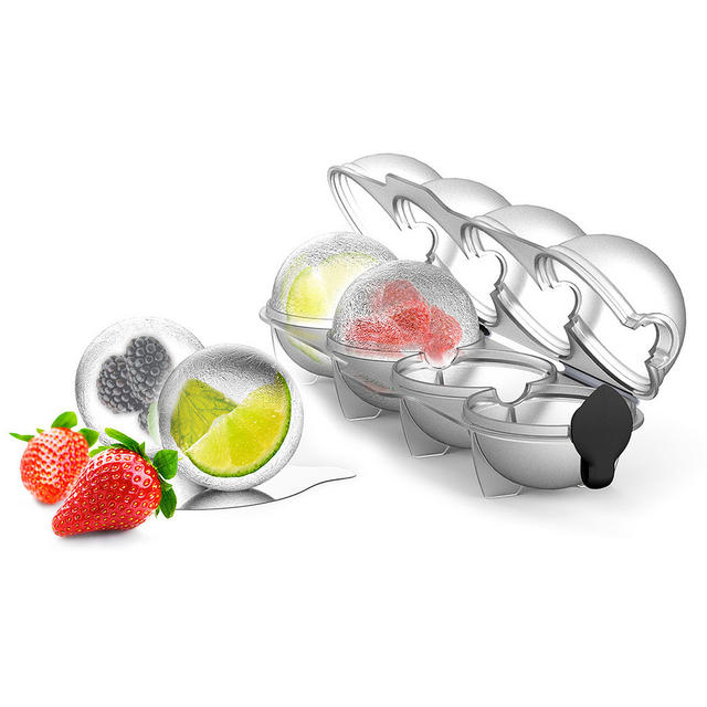 除了直接製作出四顆冰塊球外,更可以將水果片或莓果放入盒中,在添加水之後放入冰箱做成水果風味冰球。純水的冰球適合飲用威士忌時放一個進威士忌酒杯。