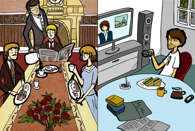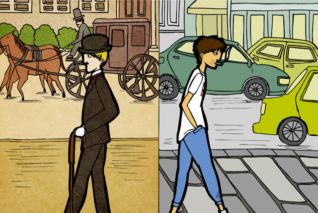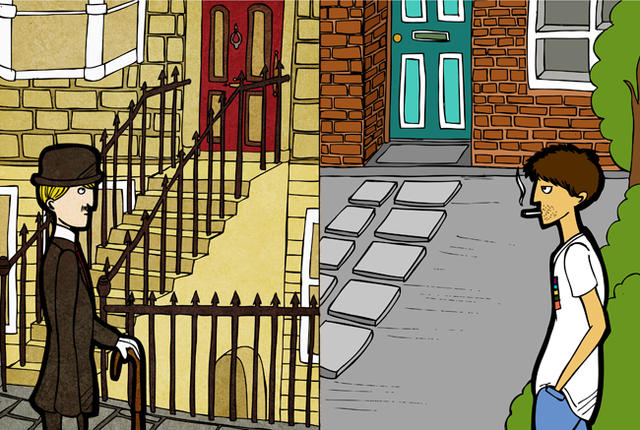 另一方面,左側的主角查理則是活在一百多年前維多利亞時期的英國紳士,雖然他的日常生活都有家人們陪伴,但是大部份的時間他還是處在孤單的狀態,以至於也忽略了小姪女瑪麗的感受。兩個時期、兩個孤單的靈魂,直到有一天他們回到家開了門,發現跑到對方世界後,平靜的生活開始起了變化。