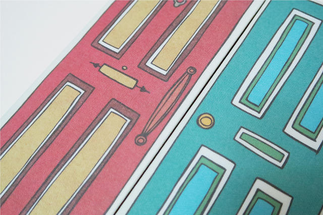 在去年(2015年)募資獨立出版成功之後,為了讓書本可以更加精緻也保存更久,因此內頁紙質與封面也都選用了不同於手工書的材質製作。首先,封面的部分是畫布,一開始本來是選擇用麻布印刷,但是麻布不太吃色,後來在印刷廠建議下改用了畫布,讓顏色比較飽滿。
