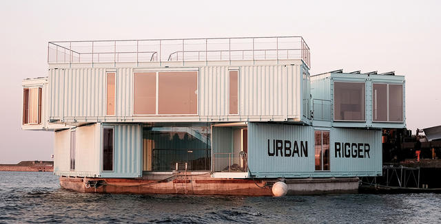 在丹麥哥本哈根,為了解決日益成長的學生宿舍需求,Bjarke Ingels Group 建築師事務所(BIG)利用升級回收的貨櫃,打造出佔地680平方公尺的Urban Rigger,切割成15個居住空間,漂浮在哥本哈根的港灣之上,作為離家在外的學生們的平價宿舍。