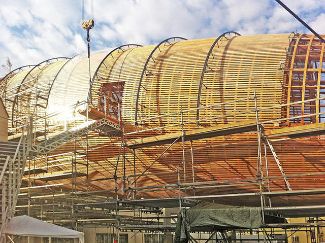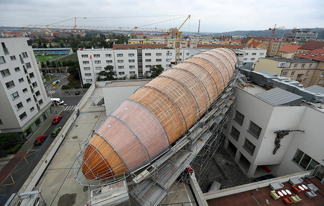 這個外觀有點另類的木造會議空間,設置了能供大約 120 人坐下的階梯,方便群眾在裡面閱讀、表演及文學討論。而如此特殊的建築設計,是由該藝術中心的創辦人兼總監 Leos Valka 與建築師 Martin Rajnis 共同合作的心血結晶,Rajnis 還曾經榮獲 2014 Global Award for Sustainable Architecture 的肯定。