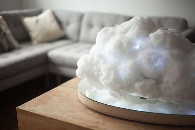 Making Weather由聚酯纖維所構成,「雲」裡面藏著藍牙喇叭、LED燈和磁鐵,磁鐵與基座之間互斥的磁力關係,讓雲朵飄浮於基座之上,而LED燈則能隨著音樂發出光芒,就好像家中真的出現晴天、陰天、打雷天,所以雲朵也隨之忽明忽暗,時晴時陰。
