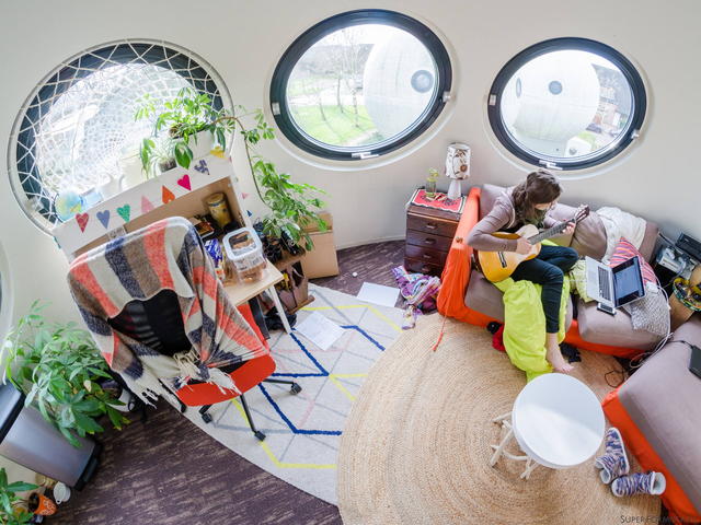 為了解決當時的住宅問題,Dries Kreijkamp便以「粉紅泡泡先生」(Barbapapa)卡通中的居住房屋為靈感,打造了50棟底下有方形基座、球體直徑約5.5公尺、約三層樓高的圓形燈泡屋,建築師選擇球體這個需要最少材料建造而能形成最多空間的造型作為基底,再加上穩定建築結構的方形儲存空間,形成近17坪大小並以螺旋樓梯連接的生活空間,包含廚房、衛浴、臥室、客廳、儲藏空間、超大窗戶一應俱全。