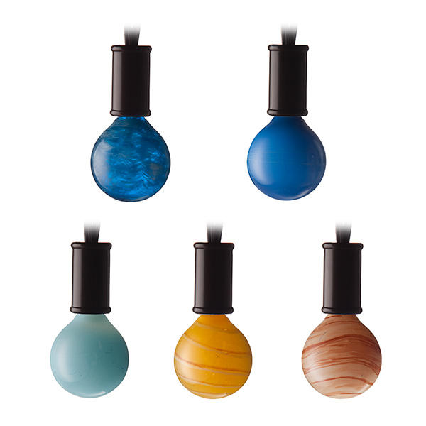 Planetary String Lights 是一串 11 英尺長的燈泡串(約莫 3 公尺),上面總共有 10 顆玻璃燈泡,各自代表著我們熟悉的星體,甚至連已經被降級除名的冥王星 Pluto 也在其中,讓這串燈泡顯得更像我們所熟知的太陽系~