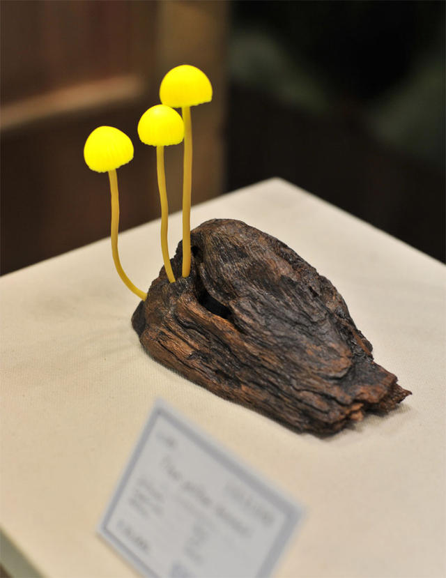 日本藝術家Yukio Takano所創作的一系列蘑菇桌燈,同樣也是以原木浮木當成基座,不過不用關燈,也不用開加濕器,Takano將樹脂染色後,直接在基座上捏出一朵朵蘑菇,菌蓋中藏著LED燈泡,複雜的電線線路則躲在基座中,乍看之下,真的會以為家中長出一朵朵蘑菇,直到瞄到基座上的開關後,才會恍然大悟!