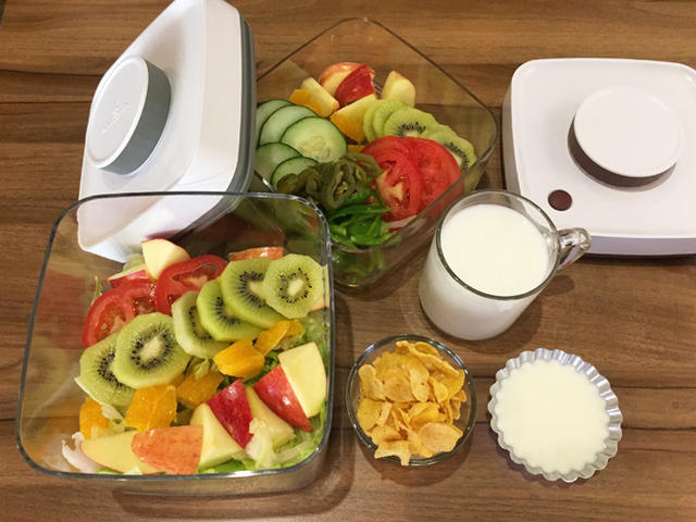休日早晨就是要賴床賴到滿足呀~哪有做早餐的動力...沒問題!就把家中吃不完的生菜、水果保存於Savior中,一早醒來,溫熱一杯牛奶、打開Savior保鮮盒、在生菜上加點酥脆穀片,再淋上低脂優格~3分鐘輕輕鬆鬆完成一份「健康晨食」!