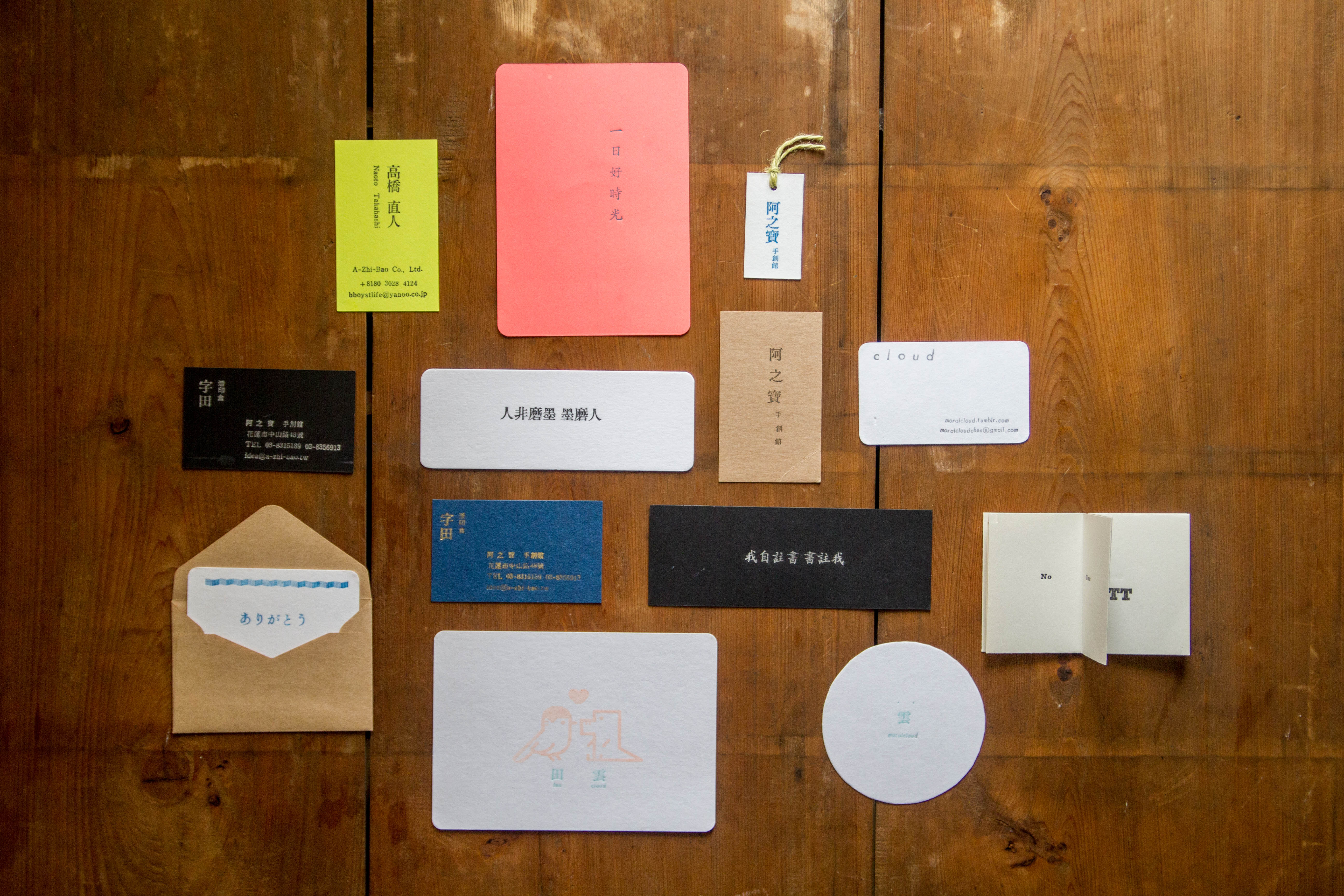 也有名片尺寸的「字田.活印盒」,短短幾個字,印在各種尺寸的小紙卡上,創造自己的書籤、個人語錄、或者更棒的手印名片,取代一次百來張的制式化印刷名片,是個人工作室/手作藝術家不可或缺的個性工具。