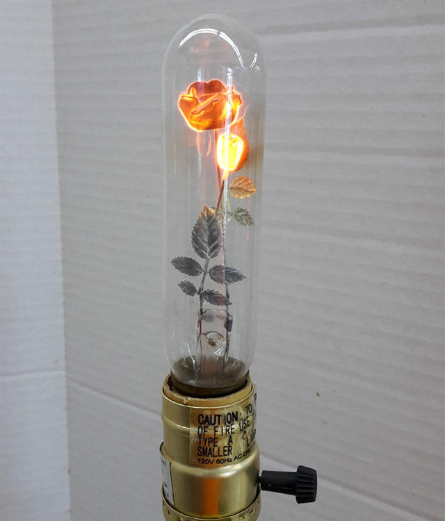 不過,在傳統燈泡完全消失之前,請給它們一個機會展示它們獨特的美:1930 年代至 1970 年代,Aerolux 照明公司生產了一系列新奇燈泡,裡頭裝有玫瑰、麻雀等小小雕塑,只要將它們通電,造型燈絲就會「由黑翻紅」,綻放出鮮豔的色彩。