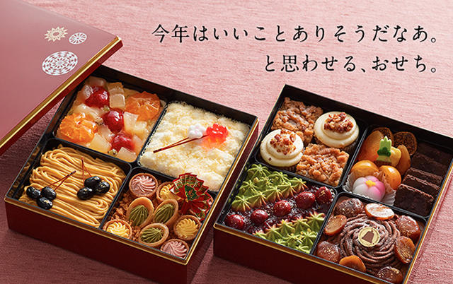 おせち料理「御節料理」,是在日本新年時吃的一種象徵喜氣祝賀的食物,用一層一層精美的四方形漆器「重箱」來盛裝,裡面再分格放入各種當季的食材和具有意義的料理,每一樣食物都含有一些祝賀的意思。這篇文章要來介紹的是另一種用甜點來詮釋的和菓子 & 洋菓子御節料理,讓新年充滿甜蜜的滋味!
