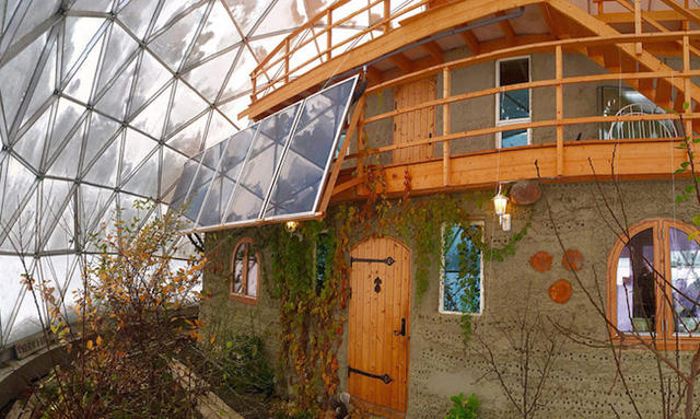 如果光靠泥土,是無法有效遮風避雨的,因此他們在小屋外面,搭起了一層 25 英尺高的圓拱型「防護罩」,不僅能夠抵擋強風與暴雪的襲擊,還能夠大幅降低取暖設備的費用,無論是在功能性,還是美觀性來說,它都能夠為質樸的小屋,增添更多的風采。