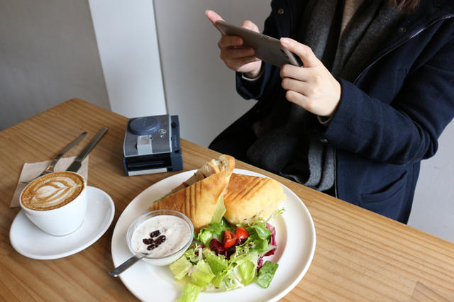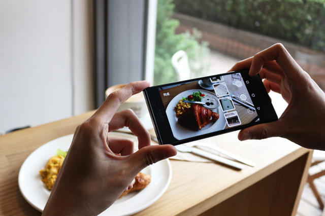 隨後,P 編的餐點也來了,我們順理成章地拿起手機,不是要自拍,也不是發現名人走過,而是先讓尊貴的手機大人,先品嘗一口食物的色香味!