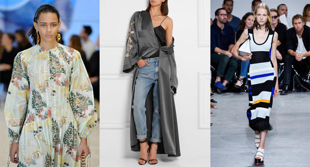 長大衣、罩衫流行了幾年,今年還會繼續,不過變得更慵懶、布料更軟,也省去呆板的扣子,以類似睡袍、浴袍等形式出現,整體率性像是隨意披上的,穿個裙子、牛仔褲、高跟鞋等,就能出門了。