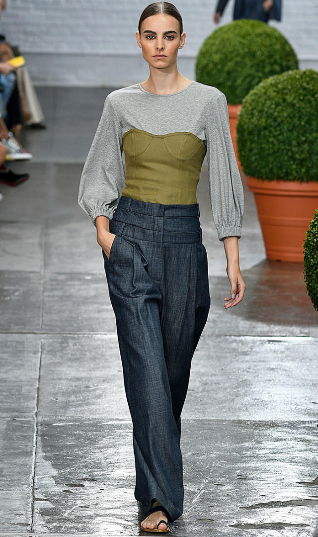 有些眼尖的人應該已看到這個趨勢,先從細肩帶連身裙開始,日劇《月薪嬌妻》女主角新垣結衣也穿過幾次,到了今年,演變成更像內衣外穿的緊身胸衣,搭配於透薄、緊身的上衣或襯衫外面,讓上半身顯得更苗條,或許還有點托胸效果。當然,有自信單穿也很好。