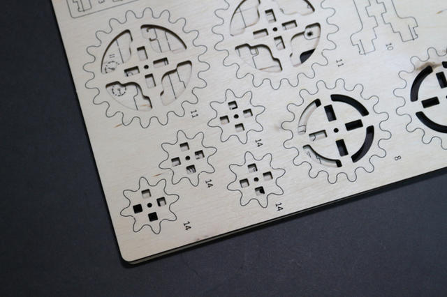 首先,第一步的組裝就可以看出 UGEARS 都是運用卡榫結構,並以牙籤當軸承,讓零件緊密咬合卻不需要黏膠。