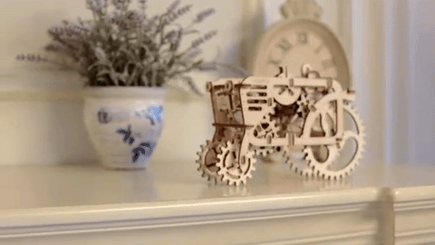 來自烏克蘭基輔的 UGEARS 機械模型不需要安裝電池,它是透過隨手可得的橡皮筋產生動力,而模型所使用的木頭零件全都是以雷射切割而成,精準沒有誤差,所以不用黏膠搞得黏TT,就可以完美組裝。這次要來餵食 DIY 轆轆飢腸的是自走拖拉機,無論是不是機械迷,都會組了就上癮!