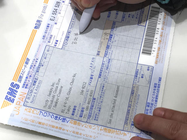 在這裡有會說中文、英文、日文的店員,將想寄送的物品交給店員,開始寫寄送資料就好了。在寄送單上寫下收件地址、姓名等資料,跟平常寄宅急便差不多。