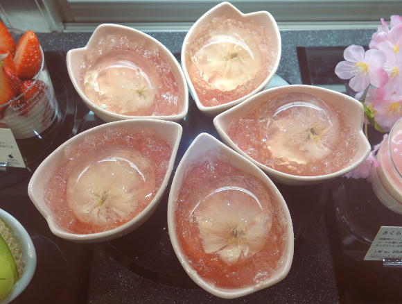 除此之外,如果有機會到東京的六本木,也可以試試高級水果店 Sun Fruits 所推出的櫻花果凍 Sakura Bavarois,每個要價日幣 540 元(約台幣 150 元)。店家大手筆地把一整朵櫻花都包在果凍裡面,放在手掌大小的櫻花造型容器中,從裡到外都是粉嫩的櫻花色,如同被風吹落櫻花樹下,一手一朵櫻花。