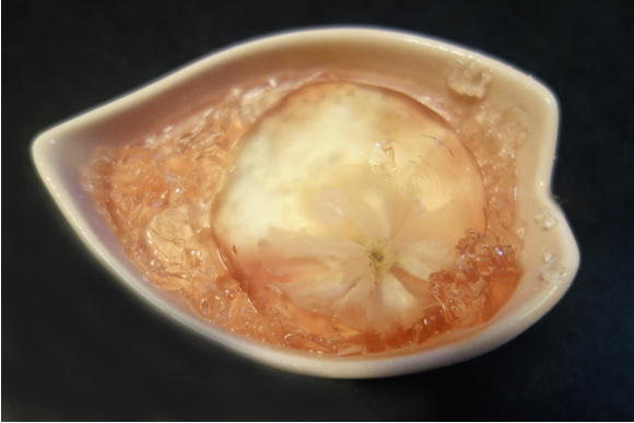 榮太樓於 1883 年在日本秋田縣的創立,算是日本知名百年老店,而這些美麗又可口的春季限量櫻花果凍推出至今,也有 13 年了。和菓子師傅把鹽漬過的櫻花花瓣,包在淡粉紅色的果凍中央,果凍混合了櫻桃利口酒的甜味和櫻花的鹹味,吃了之後,真不知道是果凍醉人,還是櫻花令人沉醉。