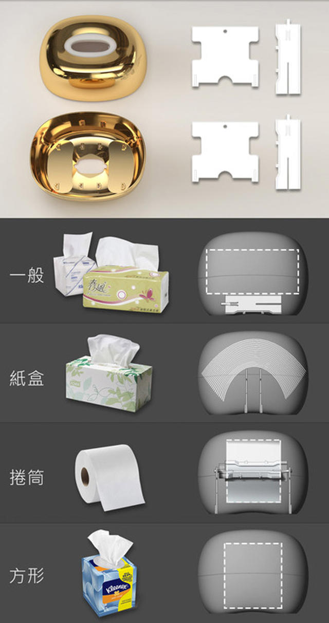 再加上,市面上可以選擇的面紙盒又很少,若只注重於外型又會忽略實用價值,因此設計師想要設計出兼具美觀與實用的產品,讓燈具結合面紙收納,不僅能容納所有面紙種類,又能以巧妙的觸碰發光方式,讓面紙盒在人們的生活中更加實用。