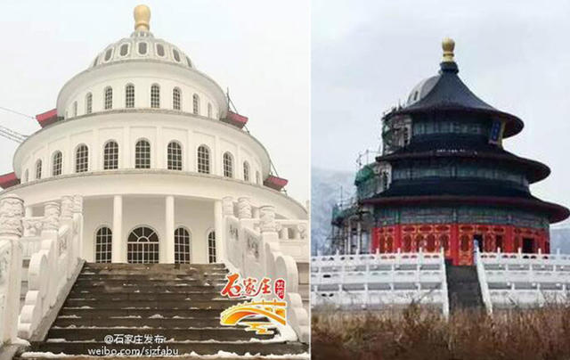 不過,中國山寨建築的「目標對象」,不單單只有西方的著名地標而已,連中國自己的歷史名物,也能模仿得維妙維肖,只要有心,到處都可以是北京、上海,實在讓人目瞪口呆啊!