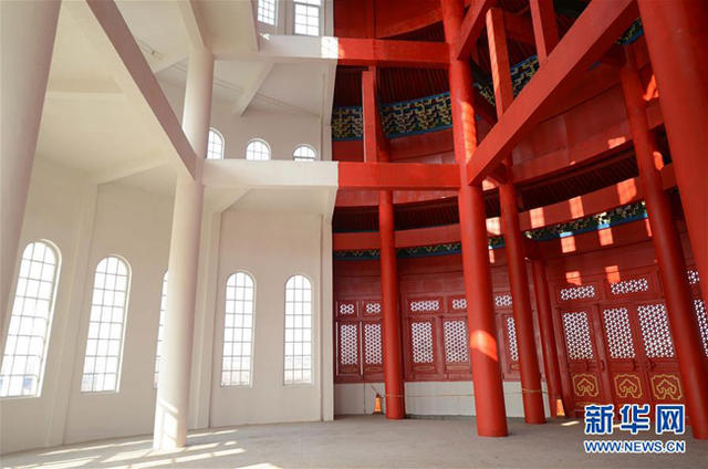 事實上,這棟建築座落於石家莊新長城國際影視城,該影視城面積超過 5000 平方公尺,是《隋唐英雄5》、《布袋和尚新傳》等劇的拍攝地,內有透明玻璃金字塔、秦漢街、御花園、未央宮等散發古風的建築群。