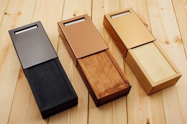 珍惜自然資源,運用被拋棄的柚木建材,重新整理製作成「一張名片」的零件;限定款則使用廢棄的台灣檜木。