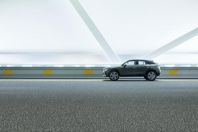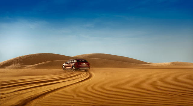 Hernandez 用發泡芯材、LED、砂紙打造出小小 Audi 的室內車道,而沙漠的部分則是用細粉混合水,當成臨時沙丘。不過 Hernandez 還是花了些 Audi 的預算,和攝影師 Adrian Sommeling 到杜拜實際跑了一趟,在標誌性的中東城市景觀前拍攝。