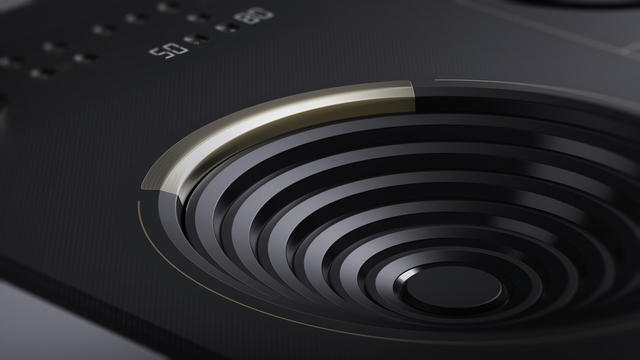 在每個同心圓環之間都是相互連結的,不用擔心菜類的渣渣屑屑會掉進移動圓環的空隙內,怎麼撈都撈不到。也可將電磁爐上的金色旋鈕式拆卸下來,方便清理,即使在沒有旋鈕的情況下,使用者也可以用觸控式的圓狀觸紐控制電磁爐,真是太貼心了~