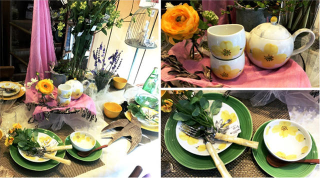 店面也有擺設當季新款商品,這次看到的是春天小黃花系列餐具,一整套的組合超級讓人想買回家,不得不說這樣溫馨的餐具會讓吃飯更顯得放鬆且愉悅。其實除了這次介紹的 2 家外,自由之丘少說也有 20 家以上的雜貨專賣店,喜歡雜貨商品的人一定要來這邊晃晃,真的會一逛下去就人忘了時間的好地方!