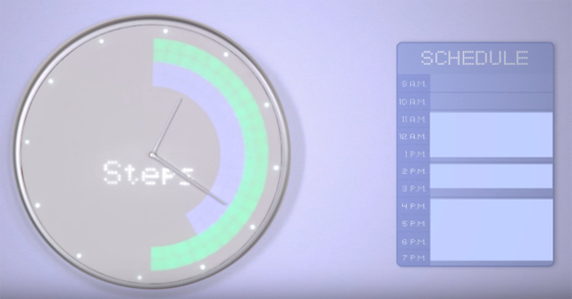 LED 螢幕可以視使用者需求而顯示各種資訊,從溫度、行事曆、計步器,到來電提醒、計程車抵達通知等等,Glance Clock 的目標其實很簡單,就是讓使用者感受到「無處不資訊,資訊最即時」。有時候,Glance Clock 還會貼心地附上笑臉,就好像背後藏著人工智慧,可以察覺出使用者的心情,適時適地的為使用者照亮一整天的心情。