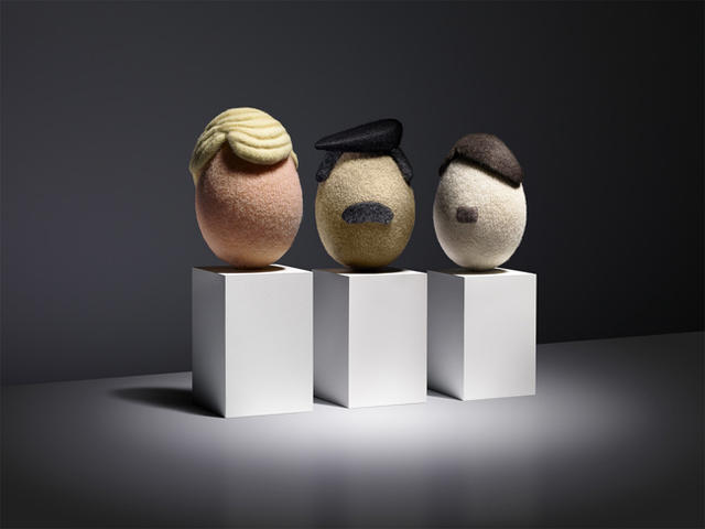 這個周末就是復活節,在台灣雖然不流行藏彩蛋,但看看藝術家推出的蛋藝術,還是頗為應景!羊毛氈藝術家 Jessica Dance 過去用羊毛氈創作了一系列看起來美味又可口的食物,這回他所推出的系列作品 Bad Eggs,創作的不是壞掉的蛋,而是壞蛋!他把過去與現在只會對人民開空口支票的政治領袖,變成一尊尊可愛到讓人打不下手的「壞蛋」羊毛氈。嗯......打不下手沒關係,拿針戳個幾下好了(笑)。