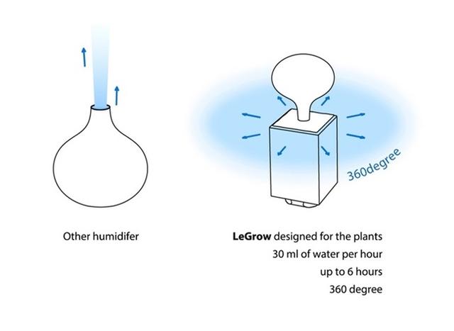 許多植物會枯萎經常是由於空氣中缺乏適量水分,尤其在暖氣空調的室內空間特別明顯。因此加濕器的設計,能為植物提供額外的水分避免過於乾燥,有別於一般加濕器,LeGrow 加濕器更可 360 度的擴散水氣。平時,加濕器也能作為便利的澆水器使用。