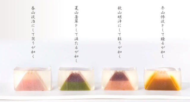 說到日本甜點,怎能沒有羊羹呢?由富士菓匠「金多留満」所推出的富士の錦,將富士山四季的美麗感化做為可口的羊羹,一一描繪出富士山的春夏秋冬。