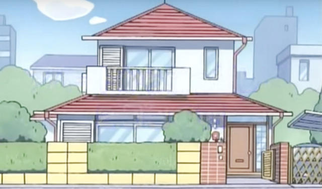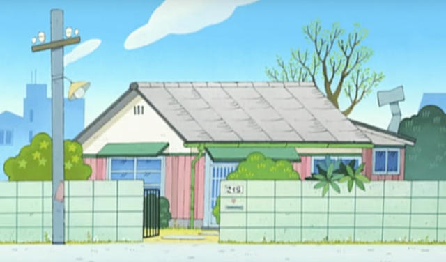 設計巧思:大概是小新與小葵都還小需要照顧的關係,野原一家大部分都只使用 1 樓空間,所以很常出現一家人全窩在臥室打地鋪睡的溫馨畫面,屋後庭院保留傳統日式「緣側」,小白狗屋便是在這,模糊室內外界限,不出門也能與大自然親近,一家人在節慶時分不用到市區人擠人,烤肉、放煙火,夏日搭起小型游泳池玩水,隨時都能自在玩樂。