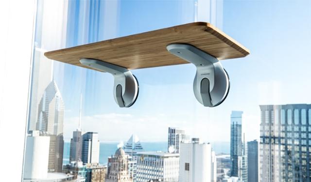 將桌子這個產品用「輕巧、堅固、耐用、易於安裝」四個特點著手設計,簡化成一個強化材質檯面和兩個超輕量鋁質外殼的強力吸盤,不用 10 秒鐘就能至可以放輕鬆固定在玻璃或任何牆面上,可輕易調整高度也方便站立使用,讓你自己決定你想辦公的地方!約 80 x 50 公分寬的工作檯面提供你放置筆電、書本,甚置茶水、盆栽,也可以成為貓咪趴睡平台,基本可耐重達 18 公斤又不佔空間,檯面還有透明、白色和木紋三款可選,台幣售價約 5,300 元,用一個行動桌面換到自在的辦公人生是滿值得的喔!