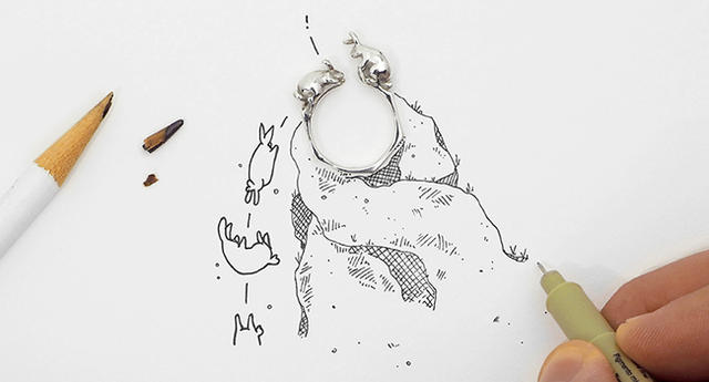 在 Multiply Like Rabbits 系列中,Dabrowski 以兔子作為主題,作為這系列配件的故事線,因為從小他就習慣筆記本的空白處畫下兔子,並將這些兔子擬人化,反映當下他腦袋中的想法、所面臨的處境或是內心的感受。透過這些擬人化的過程,兔子不只是有著可愛的外表,還會跳、會吃、會繁殖,天真爛漫地生活在這個世界上。